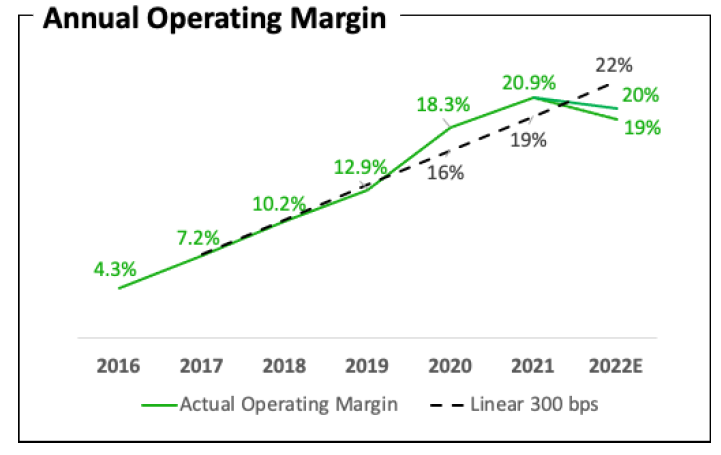 Management is confident for operating margins to improve at 3% per year. It’s not going to be linear depending on when they begin certain heavy project spending, and for the next few quarters we can expect margins to dip as they resume spending on content which were delayed due to COVID-19 restrictions.
