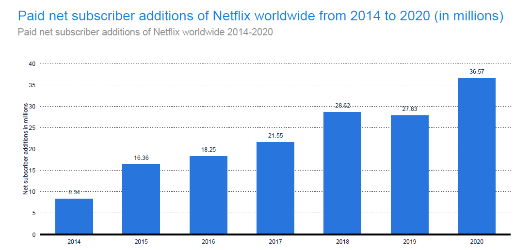 In 2008, the company had fewer than 9M subscribers, but once it began offering video streaming directly to TV for existing customers, subscriber growth accelerated and it supported the introduction of a streaming-only service in 2010.
