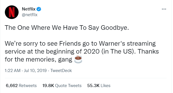 Reed Hastings, Netflix’s CEO, understood the threat early on, before its newly emerged competitors started to pull the plug on Netflix by removing their most prized licensed content such as Friends, all of Disney & Marvel movies and more.