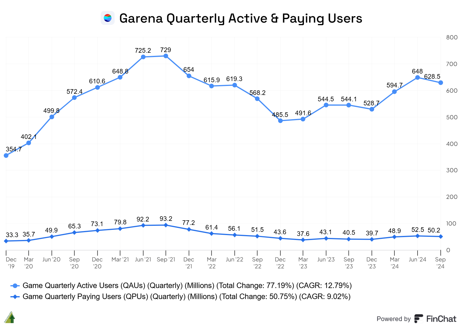 Quarterly active users decreased by 3% sequentially to 628.5 million, and quarterly paying users decreased by 4.4% to 50.2 million, as there will be quarterly fluctuations due to the timing of events or collaborations.