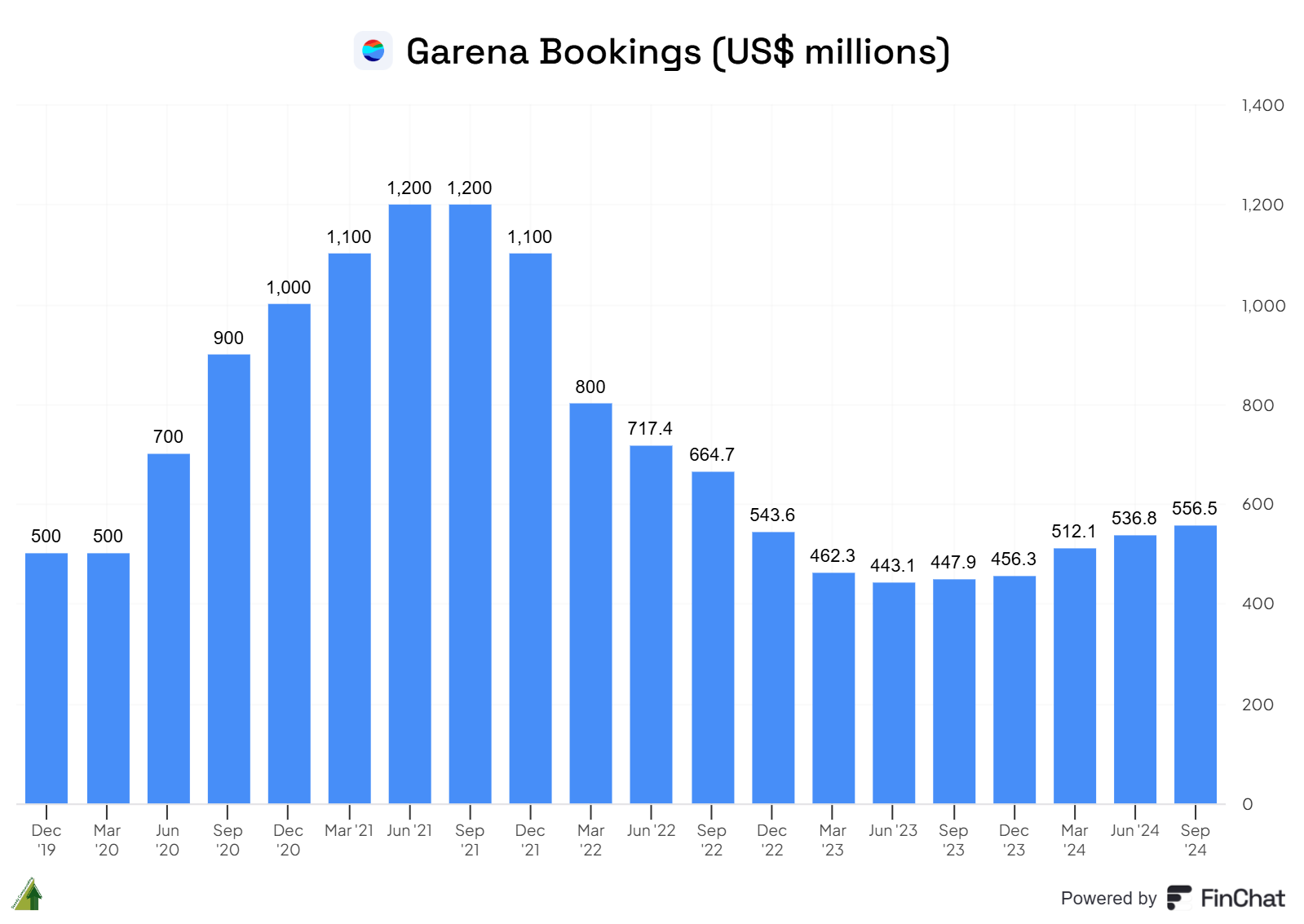 Since hitting its low point in Q2 2023, Garena has continued its recovery with another quarter of growth. Bookings for the segment increased 3.7% sequentially to US$556.5 million.