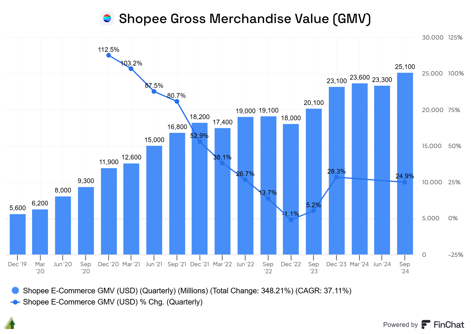 For 2024, Shopee is on track to deliver full-year guidance of mid-20s GMV growth. Assuming 25% year-over-year growth, full-year GMV is estimated to reach US$98.2 billion. With US$72 billion already achieved in the first nine months, Q4 2024 GMV is expected to reach US$26.2 billion, a 13.6% increase year-on-year.