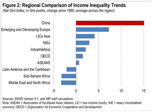 However, during this process rural-urban, regional, and industrial gaps widened. The Gini coefficient, a measurement of income inequality hit a record high.